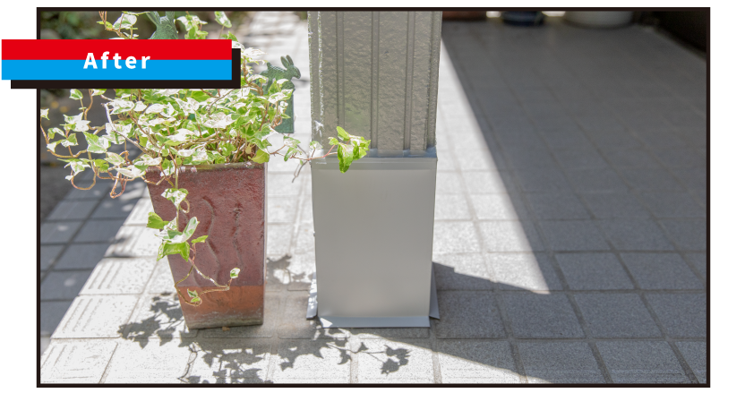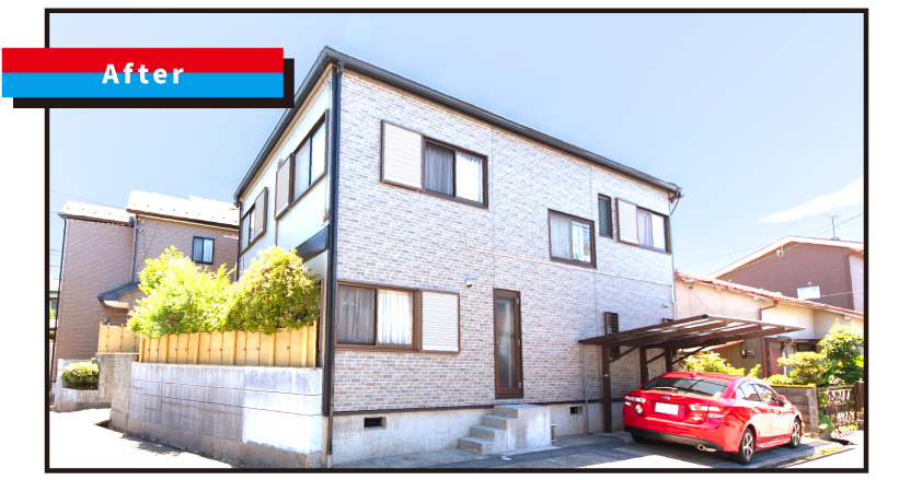老朽化が進んでいた北面にはガルバリウム鋼板を使った「カバー工法」を南面には塗料を使った「外壁塗装」を使用して「ハイブリッド工法」で施工させていただきました。